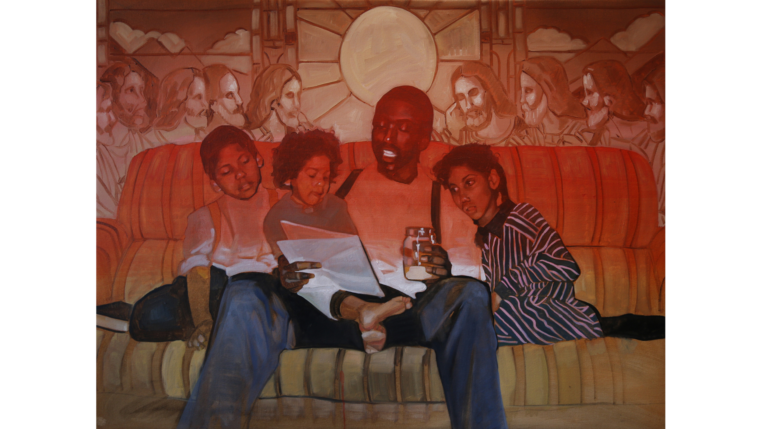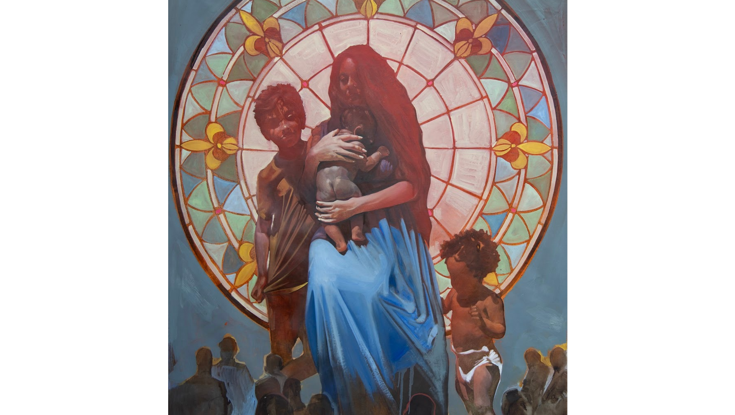 Figures and faces are at the heart of Jessica Vollrath’s mastery in oil painting. It’s her aptitude for color, combined with an instinct to explore the complexities of the human condition and identity, that translates to the canvas with confidence. Born to a Mexican mother and African-American father, Jessica was raised alongside eleven siblings with a Mennonite upbringing. Her paintings are directly autobiographical and emulate the profound ties of family and faith. The overlaps we might imagine in her story in fact reveal a play of light and shadow, the contrasting influences and the delicate balance in between — a certain type of transition that is both deeply personal and universal.