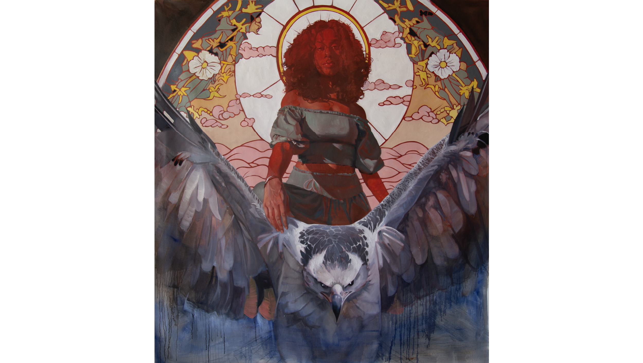 I’ve been inadvertently working on this exhibition for the past year. In the beginning I had completely different ideas for the show, but over time all of those paintings fell flat. While I was expending massive amounts of energy creating the “serious” work I had envisioned, I was also working on what I felt were “random” pieces in between. This show is a culmination of all of those seemingly random pieces that fit together perfectly. The resounding feedback from the audience for A good end has been that the energy felt sacred. Like a temple or a church, where you can have this experience with the divine. Being able to bring the sacred out of a certain religion and into a gallery has been such an unexpected honor.