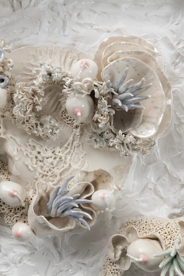 1. Mermaid’s Milk, 2022. Porcelain. Courtesy of the artist. 2. Filthy Crown, 2023. Porcelain.